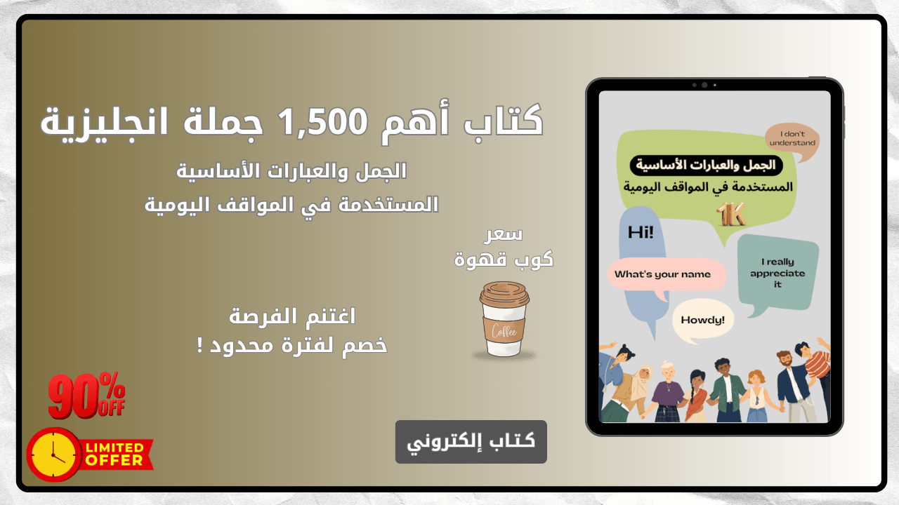 لا تنتظر طويلاً؛ ابدأ الآن بتعلم الجمل الأساسية وتطوير مهاراتك اللغوية. احصل على "أهم 1,500 جملة في اللغة الإنجليزية" واجعل الإنجليزية لغةً سهلة وجزءًا من تفاعلاتك اليومية.